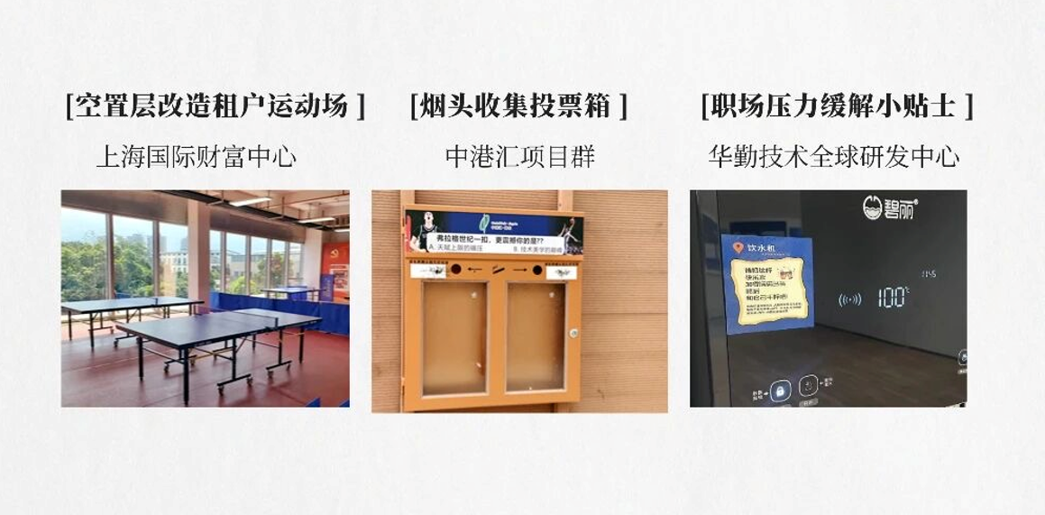 同样以运动激活空间的,还有上海国际财富中心。一张张乒乓的置入,服务团队就此点亮了大楼空置的角落,瞬间丰富了租户的午间休憩时光。这个巧思成功实现了提升空间利用率与体验升级的双赢。