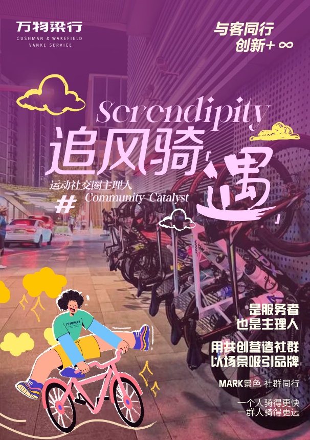 在上海万科天空之城,我们进行了一场有趣的实验。万物梁行服务团队联动住宅、办公和商业组建百人社群。团队不仅规划了4条专属骑行路线,更将创意融入细节——通过壁挂式自行车位传递骑行文化,设立骑趣补给站和维修工具包,让每一次出发都无后顾之忧。